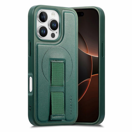 iPhone 16 Pro Hard Plastic Case with Faux Leather Back & Finger Strap - MagSafe Compatible - Green