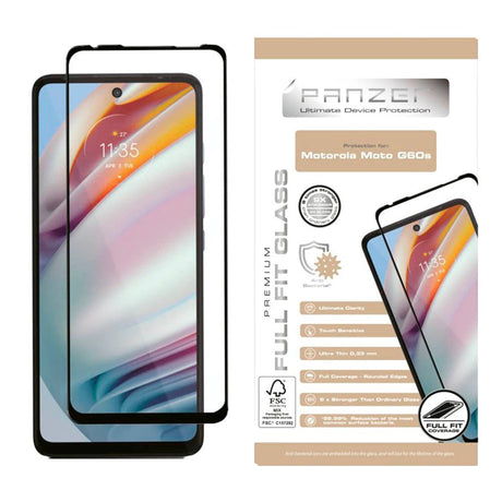 Motorola Moto G60s PANZER Premium Tempered Glass Screen Protector w. Black Frame - Full Fit