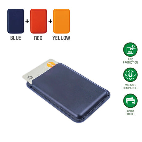 Magnetic Card Holder with RFID Protection - MagSafe Compatible - 3 Pack - Blue / Red / Gold