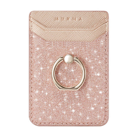 Leather Card Holder Stick-on w. Finger Ring - Glitter - Rose Gold