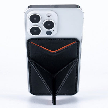 Magnetic Vegan Leather Card Holder w. Stand Function - MagSafe Compatible - Black