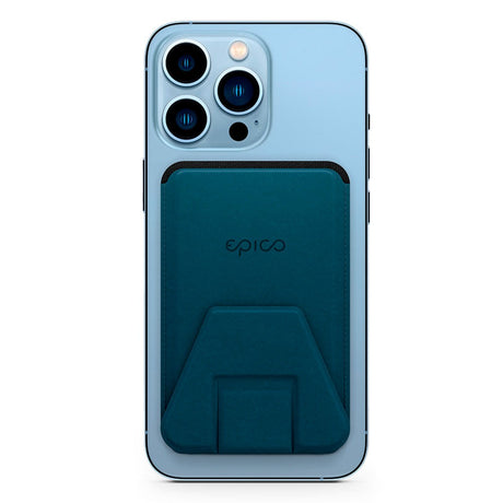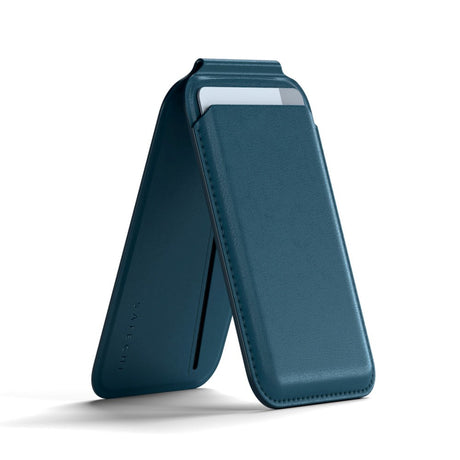 Magnetic Vegan Leather Card Holder w. Stand Function - MagSafe Compatible - Blue