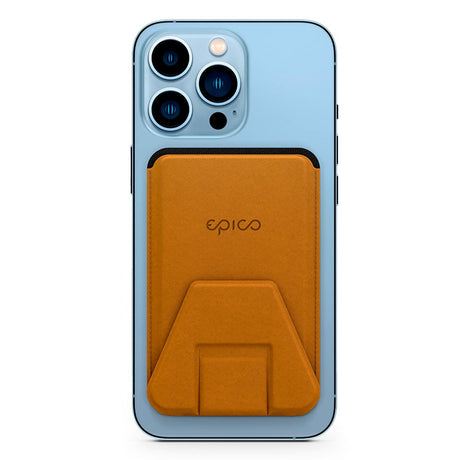 Magnetic Vegan Leather Card Holder w. Stand Function - MagSafe Compatible - Brown