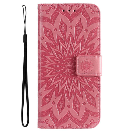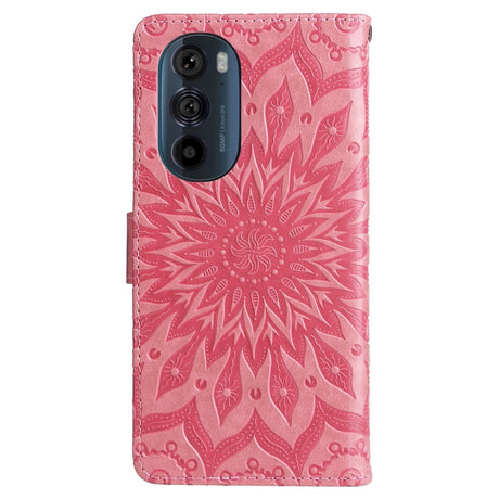 Motorola Edge 30 Pro Leather Case with Wallet and Strap - Mandala Print - Pink