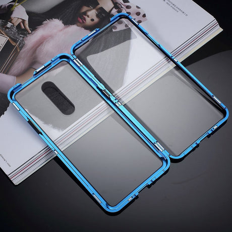 OnePlus 7 Pro Magnetic Metal Case w. Glass Front & Back - Blue
