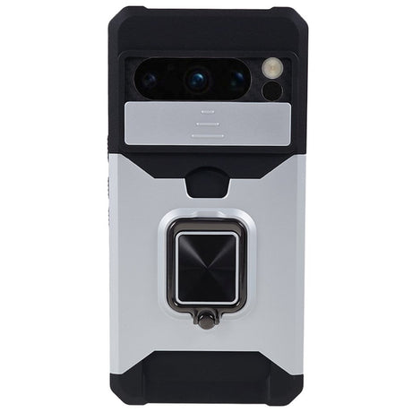 Google Pixel 8 Pro Tough Case w. Magnetic Kickstand, Card Holder & Cam Slider - Silver