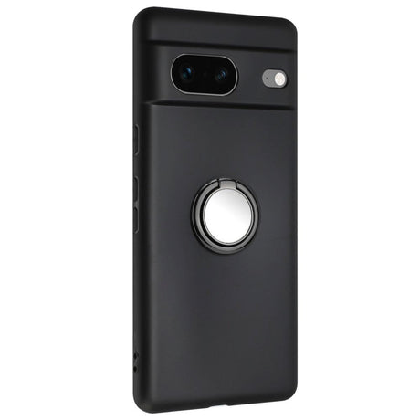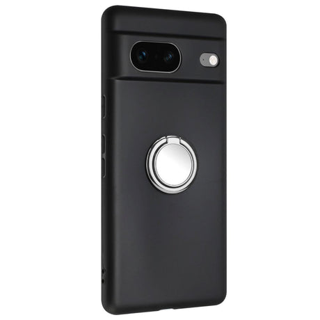Google Pixel 8a Flexible Plastic Case w. Magnetic Ring Kickstand - Black w. Black Ring
