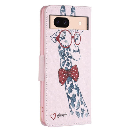 Google Pixel 8a Leather Flip Case w. Wallet & Print - Giraffe