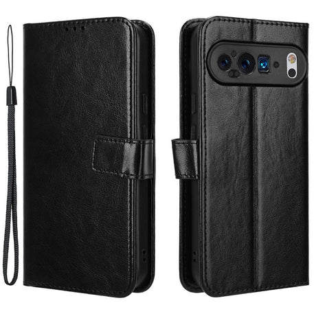 Google Pixel 9 / 9 Pro Leather Flip Case w. Stand & Wallet - Black