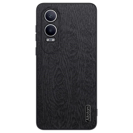 OnePlus Nord CE4 Lite (5G) Leather Covered Plastic Case - Wood Texture - Black