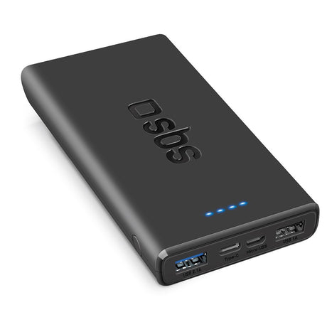 Slim Power Delivery 18W Powerbank with 2 x USB-A / 1 x USB-C & 1 x USB-C Cable - 10.000 mAh - Black