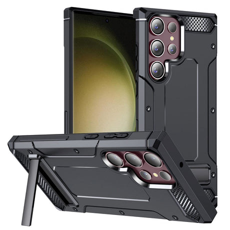 Samsung Galaxy S23 Ultra Tough Plastic Case with Metal Kickstand - Black