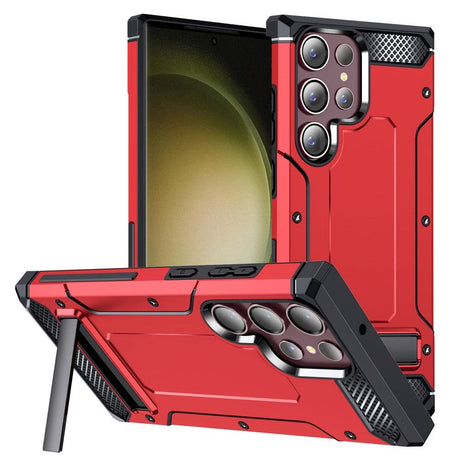 Samsung Galaxy S23 Ultra Tough Plastic Case with Metal Kickstand - Red