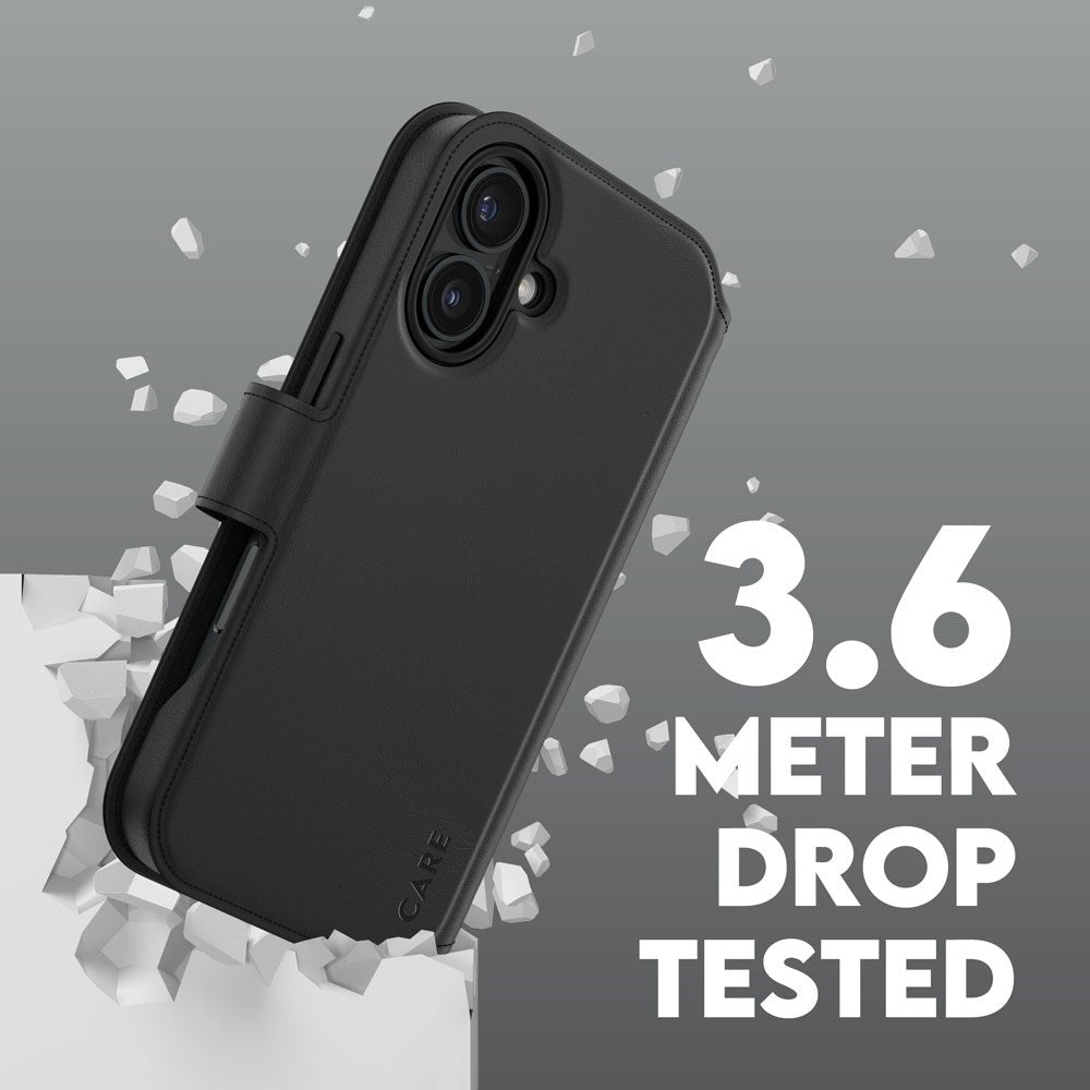 CARE by PanzerGlass iPhone 16 Feature Tango 2-in-1 Flip Case with Wallet - Black