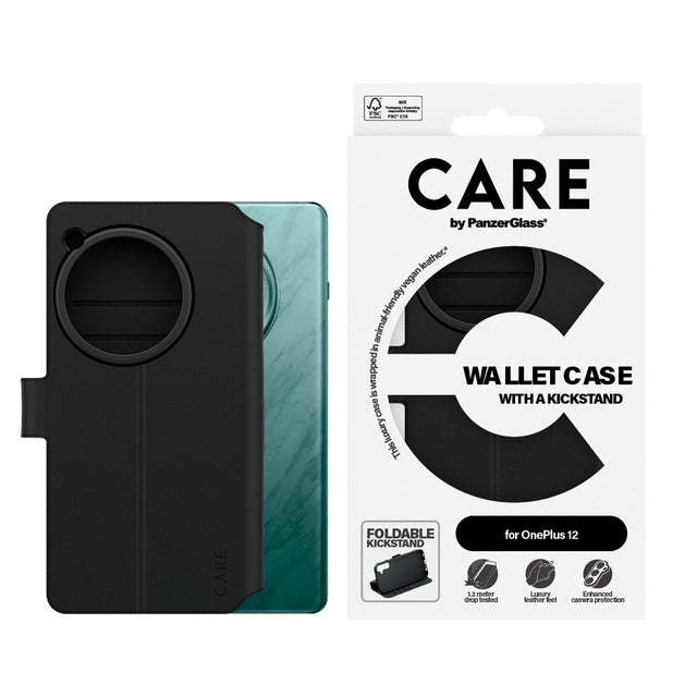 CARE by PanzerGlass OnePlus 12 Feature Wallet Case with Kickstand - Black