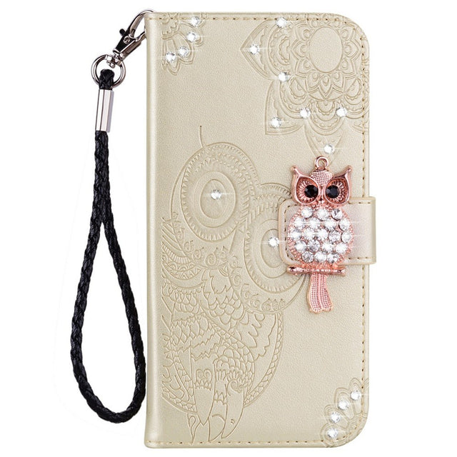 The unique owl design combined with sparkling rhinestones gives the case a striking and personal look – perfect for those who want to stand out with stylish accessories. The case also includes two card slots and a pocket for cash, making it easy to go out without carrying a separate wallet.