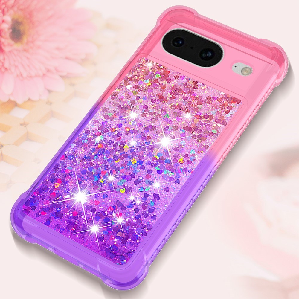 Google Pixel 8 Transparent Glitter Case - Pink / Purple