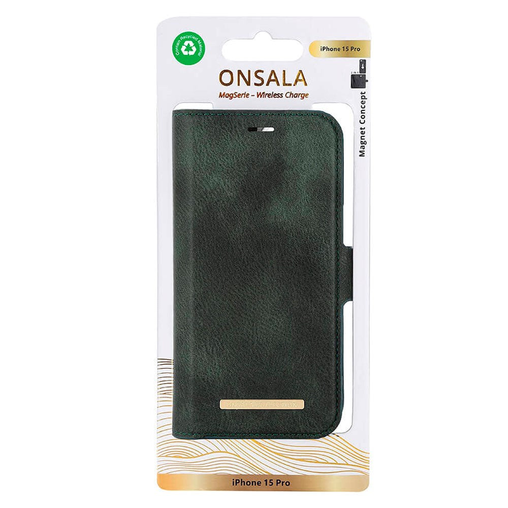 iPhone 15 Pro GEAR ONSALA Fashion Collection Wallet Case w. Magnet - MagSafe Compatible - Dark Green