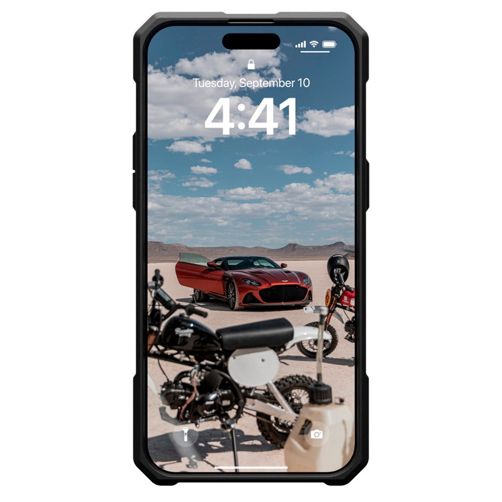 With a UAG Monarch Pro tough case you get top quality and protection for your iPhone 15 Pro Max. The case is made in a feather weight and reinforced construction with 5 layers of protection and with a shock-absorbing inner part. The back is coated with strong DuPont kevlar fiber, and covered with robust hard plastic. The sides are made of flexible plastic, which is both highly shock absorbent and has a tactile surface that provides a secure grip.