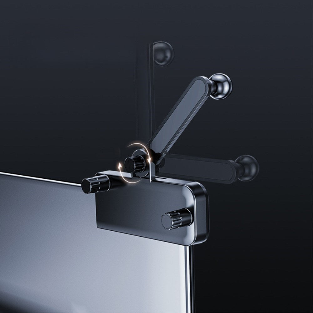 The holder is mounted on the corner of your car’s screen, giving you a clear view of your phone without obstructing the screen. On the back of the holder are three screws — two are used to attach it to the screen, while the third adjusts the height of the arm that supports your phone.