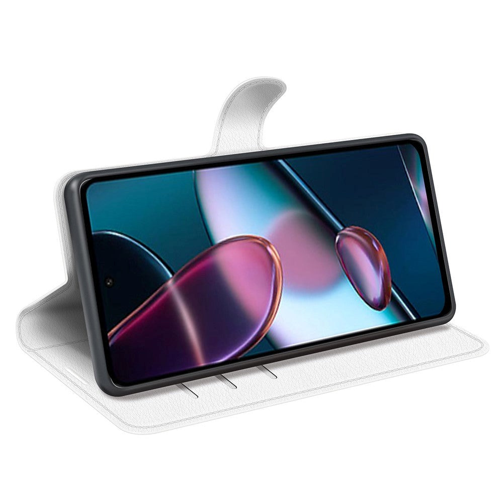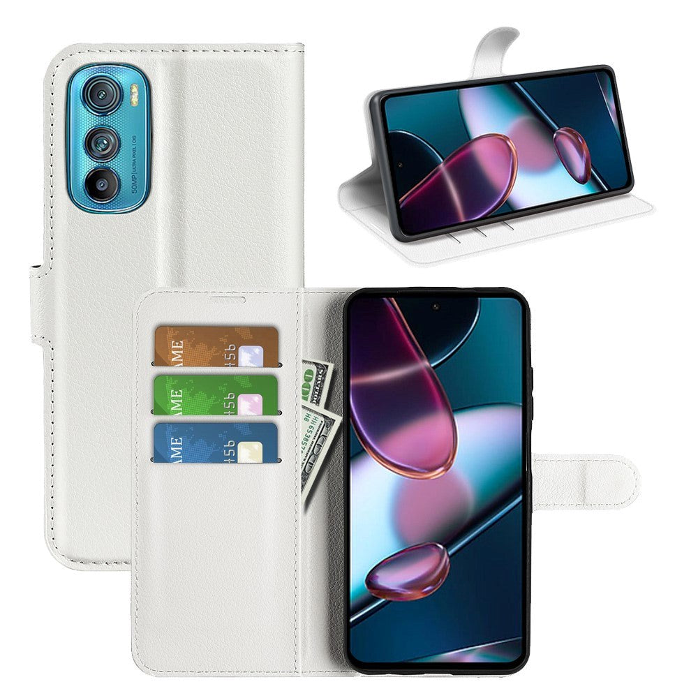 Motorola Edge 30 PU Litchi Leather Flip Case with Wallet & Stand Function - White