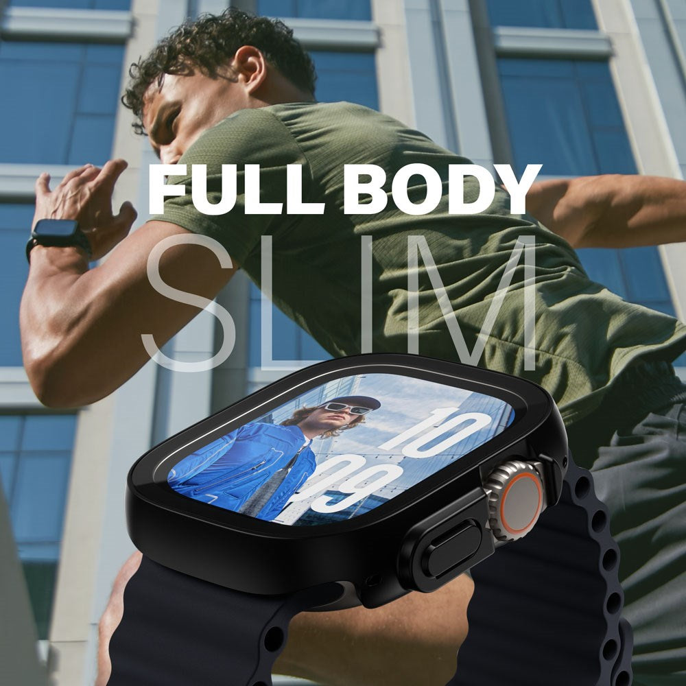 The Apple Watch Ultra 1/2 (49mm) case is designed to withstand shocks and drops, and the built-in screen protector absorbs the shocks, increasing the chance of your watch screen remaining intact. The slim edge means that the case is almost not visible, while you still have full access to all functions and buttons on your smart watch.