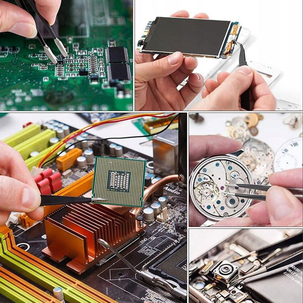 Perform precision work on watches, smartwatches, and other small electronics with this toolset. The set includes nine specialized tweezers that make it easy to handle detailed tasks such as replacing straps or adjusting links, ensuring you always have the right tool at hand.