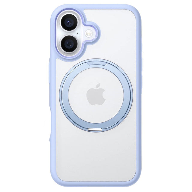 iPhone 16 Hybrid Plastic Case with Rotatable Kickstand Ring - MagSafe Compatible - Transparent / Blue
