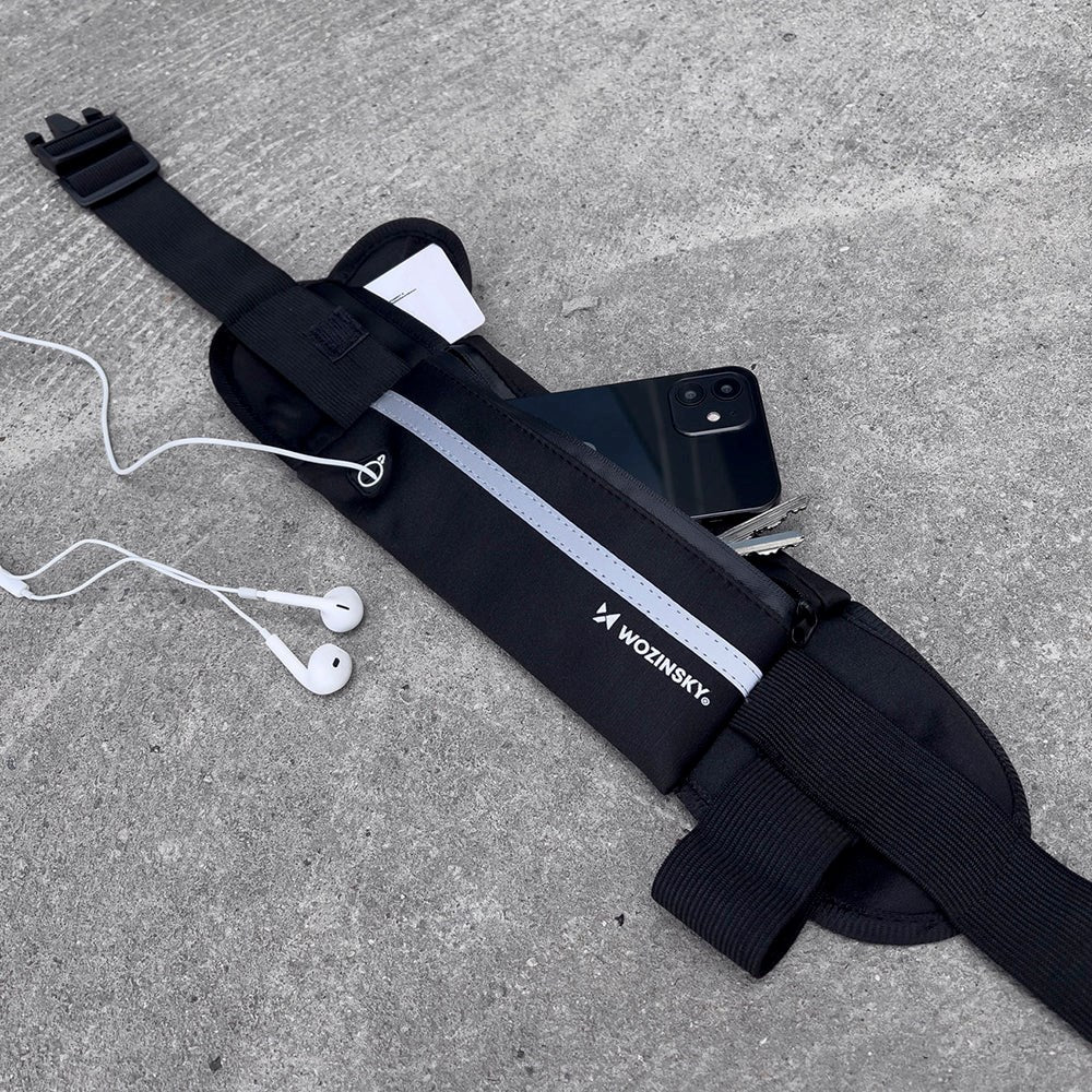 The running belt is made of neoprene, which makes it both durable and light. The running belt has one large pocket for your smartphone, in which you can of course also store your credit card or other smaller items. In addition, the running belt has a holder where you can have a small water bottle.