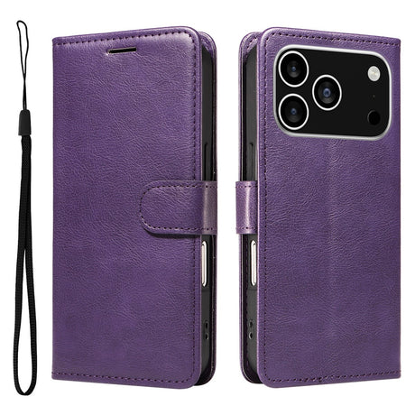 iPhone 17 Pro Faux Leather Case with Wallet & Strap - Purple