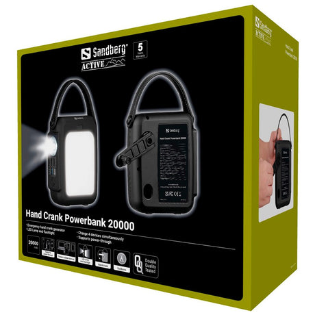PowerBank 20W with Hand Crank & 2 Flashlights - 2 x USB-A & 2 x USB-C - 20,000mAh - Black