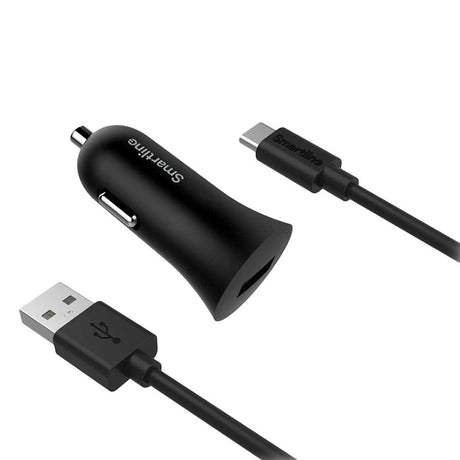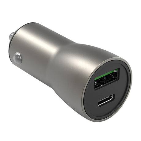 PD (Power Delivery) 36W Car Charger w. USB-C & USB-A - Metal Grey