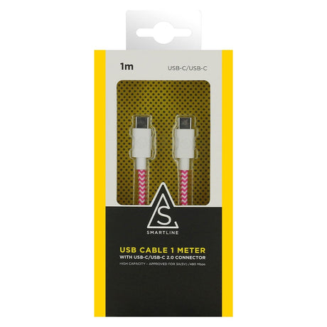 Braided (3A/15W) USB-C to USB-C Cable 1 w. - Pink / White