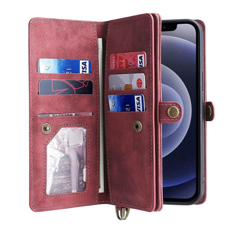 iPhone 12 / 12 Pro MEGSHI Leather Flip Case w. Magnetic Wallet - Red