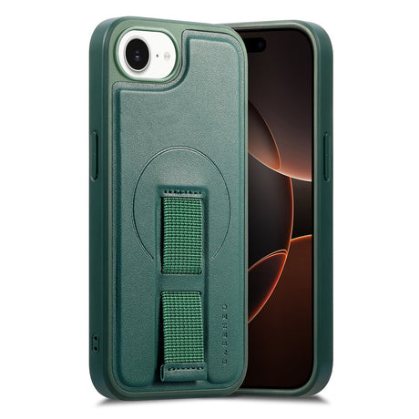 iPhone 16e Hard Plastic Case with Faux Leather Back & Finger Strap - MagSafe Compatible - Green