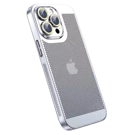 iPhone 15 Pro Hard Perforated Plastic Cover with Camera Lens Protection - Siver
