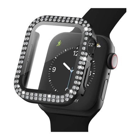 Apple Watch (40mm) Hard Plastic Case w. Built-in Screen Protector - Black & Rhinestones