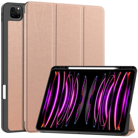 iPad Air 13" (2024) Tri-Fold Artificial Leather Flip Case w. Apple Pencil Holder - Rose Gold