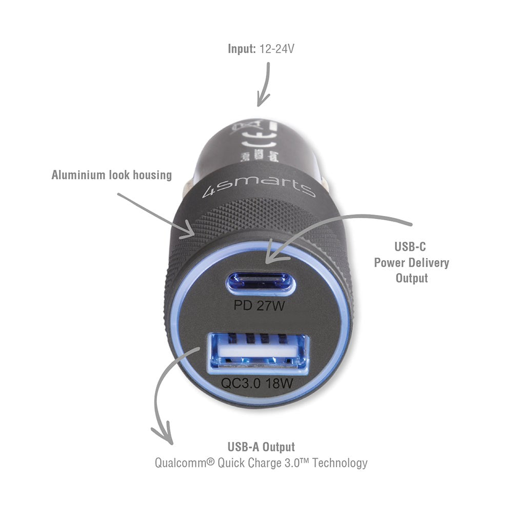 This 4smarts car charger is supported with Quick Charging (QC) and Power Delivery (PD). Phones that do not support these can of course also be charged by this charger from 4smarts.