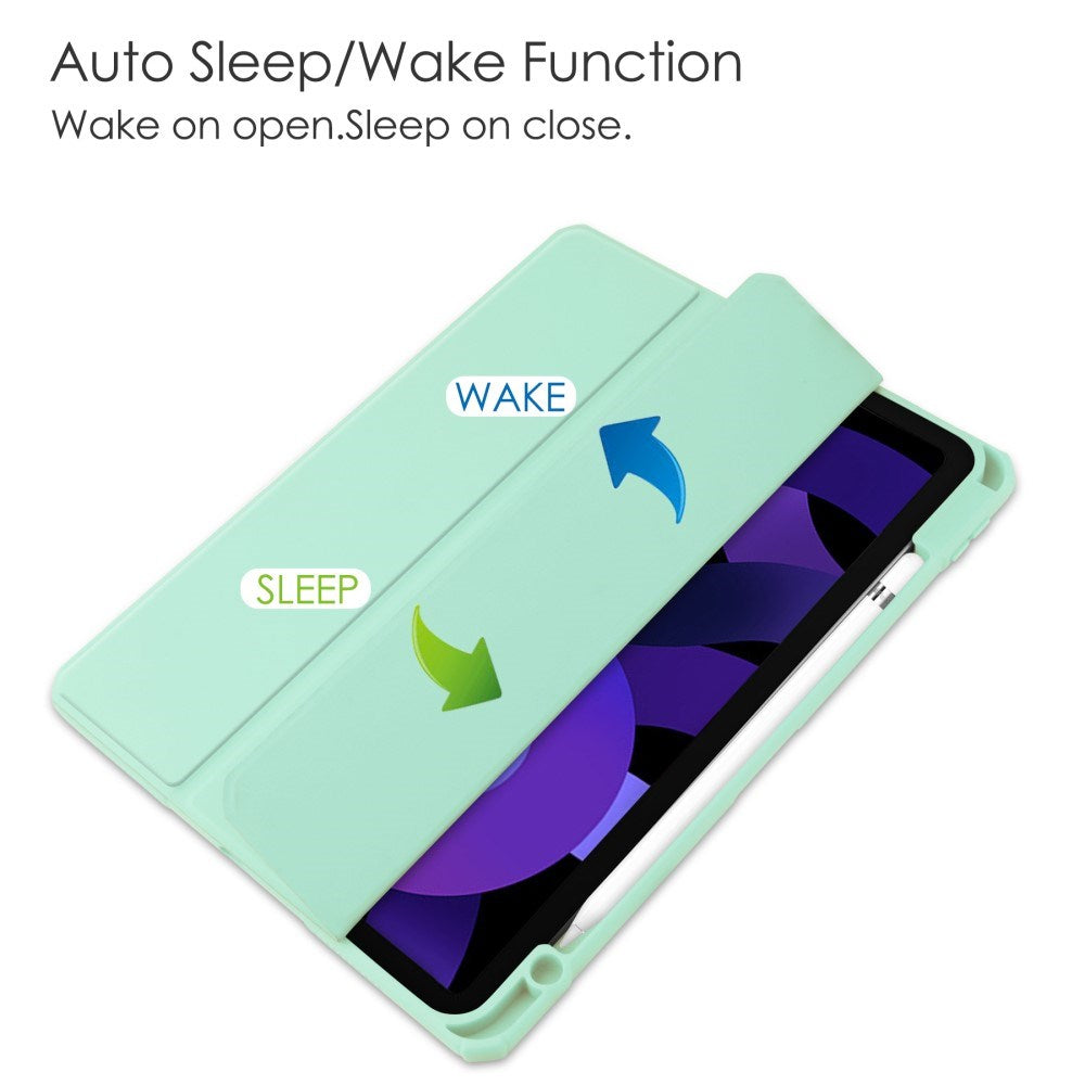 iPad Air 11" (2024) Hybrid Flip Case w. Pen Holder - Mint Green & Transparent