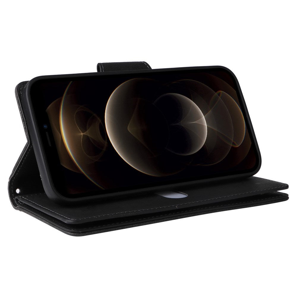 iPhone 12 Pro Max Flip Case with Card Holder & Zipper Pocket - Black