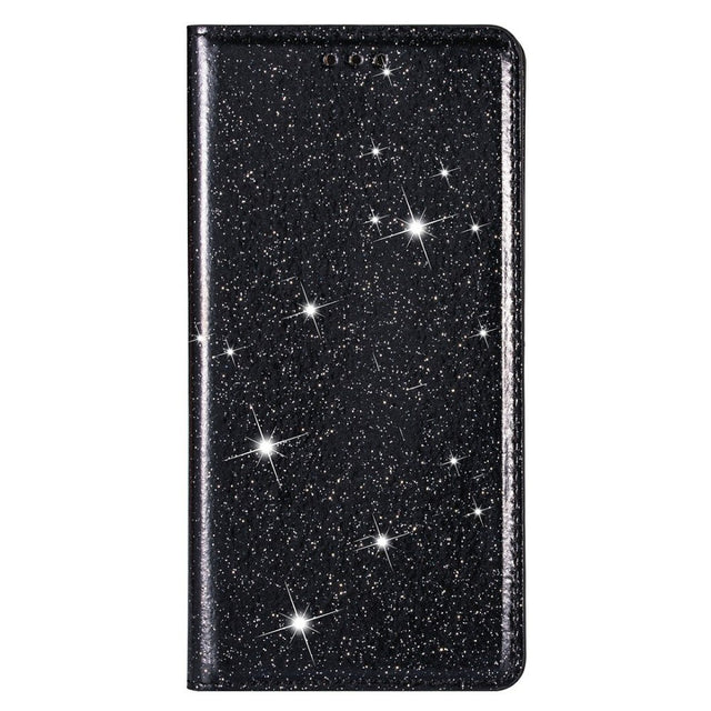 iPhone 13 Mini Leather Case w. Wallet & Stand Function - Glitter - Black
