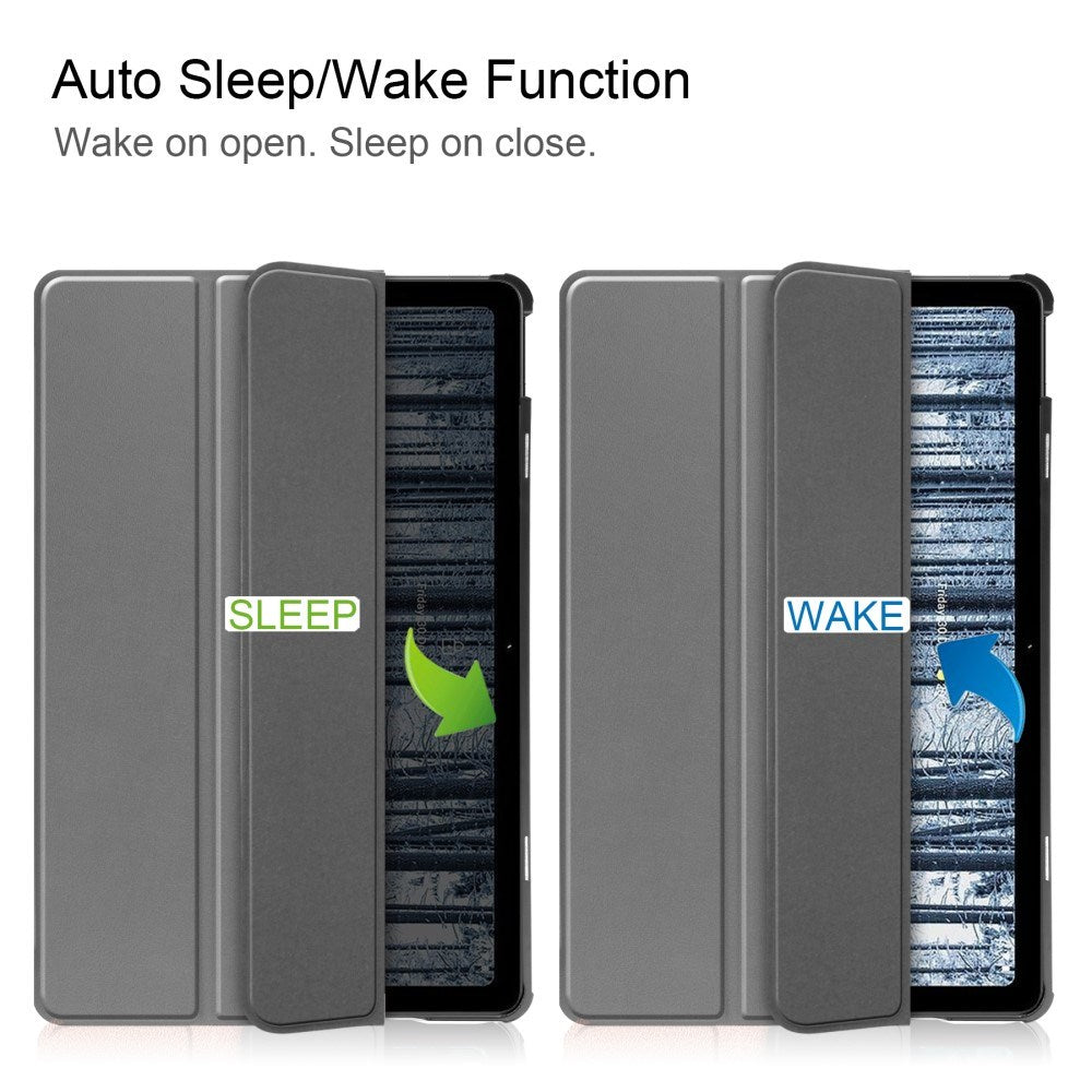 This Nokia T21 case has a front that can be flipped and used as a stand function in two different angles as needed. In addition, the front also has a wake/sleep function, which means that it turns off your device when the front of the case goes down over the screen, and in this way makes sure to both turn off your device, but at the same time also protect its screen. The case is light and easy to take with you when you're on the go.