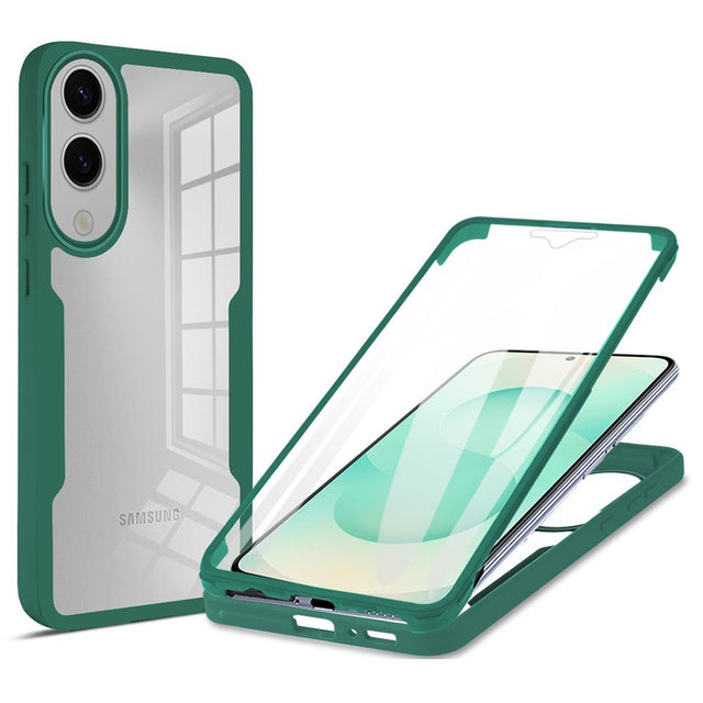 Samsung Galaxy S25 Edge Case with Full Protection and Screen Protector Film - Transparent / Green Edge