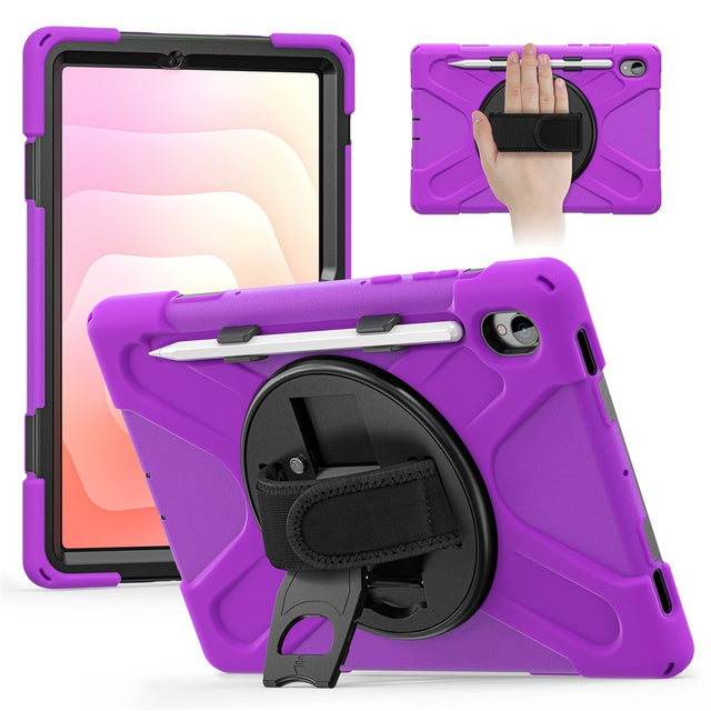 Samsung Galaxy Tab S11 Shockproof Case with 360 Degree Rotatable Kickstand & Velcro Strap - Purple