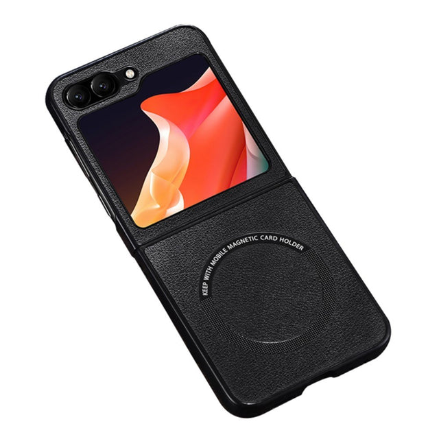 Samsung Galaxy Z Flip6 Leather Cover Plastic Cover - MagSafe Compatible - Black