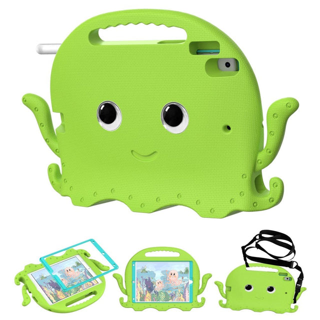 iPad 10.2" (2021 / 2020 / 2019) / iPad Pro 10.5 / iPad Air (2019) EVA Children's cover with Shoulder Strap - Octopus Theme - Green