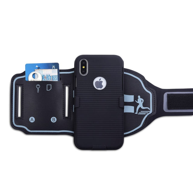 Can be used as both a case and a running wristband, as the inner part is removable and slides into a holder. The holder is upholstered with a soft fabric material to protect your iPhone X / Xs from scratches and scuffs.