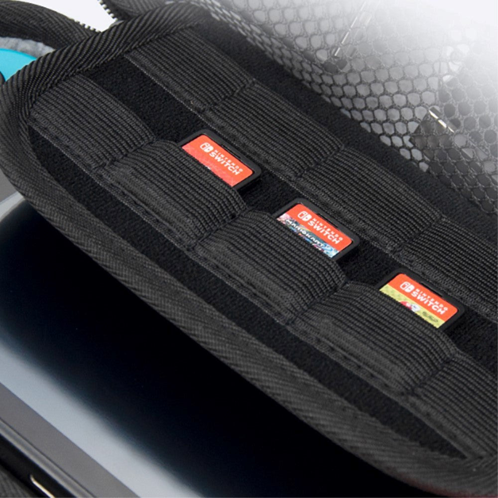 Inside, the travel case has a padded compartment for the console and a space for storing games. There is also a separate pocket for storing extra Joy-Con controllers, cables and other accessories.