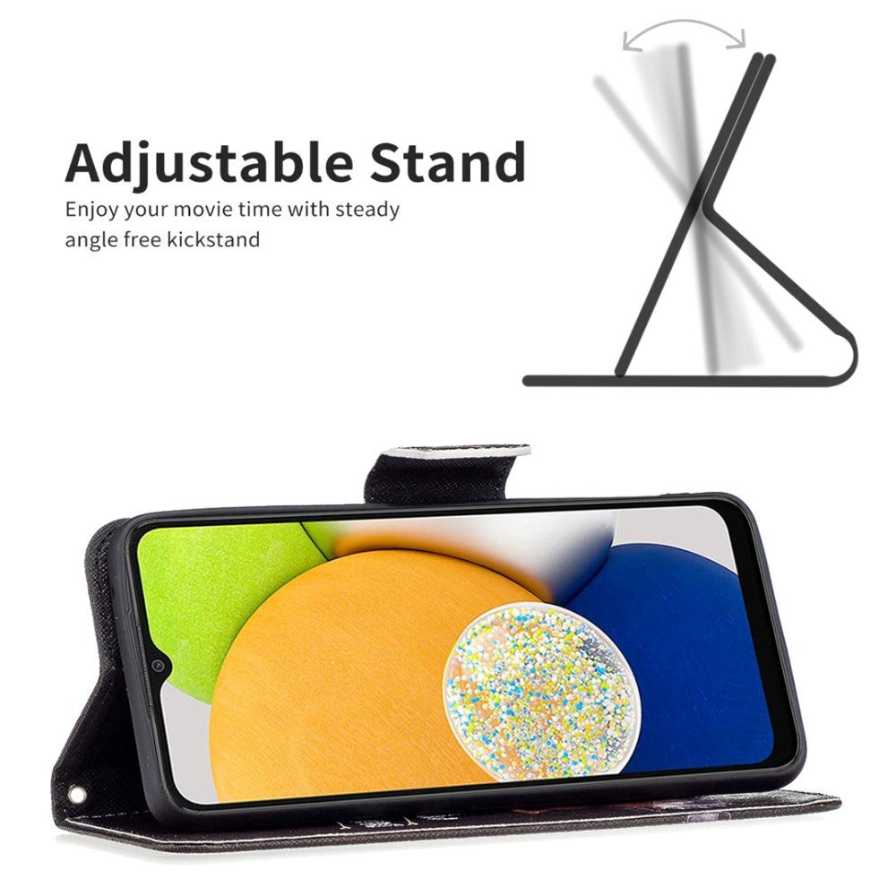 Samsung Galaxy A03 Case with Large Wallet in Leather - Do not Touch My Phone Bear - Black